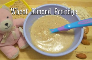 heat Almonds porridge is a great baby food for your baby to be introduced at the age of 6 – 8 months.The reason being the first ingredient Almonds have a lot of healthy benefits like containing good fats instead of bad i.e. unsaturated fats, also almonds are also good for brain. The second ingredient wheat is a rich source of carbohydrates.